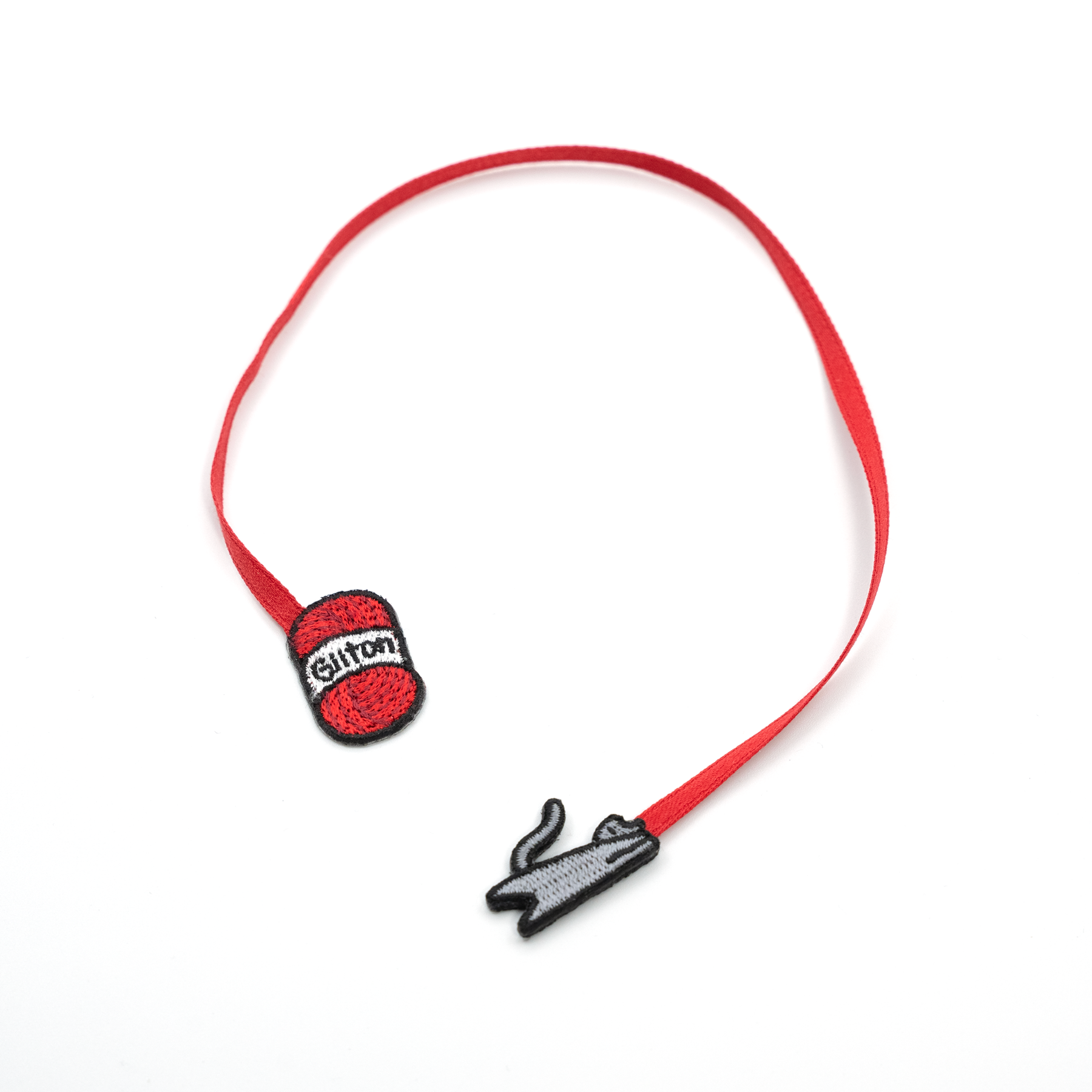 Bookmark with a red yarn and grey cat on a white background